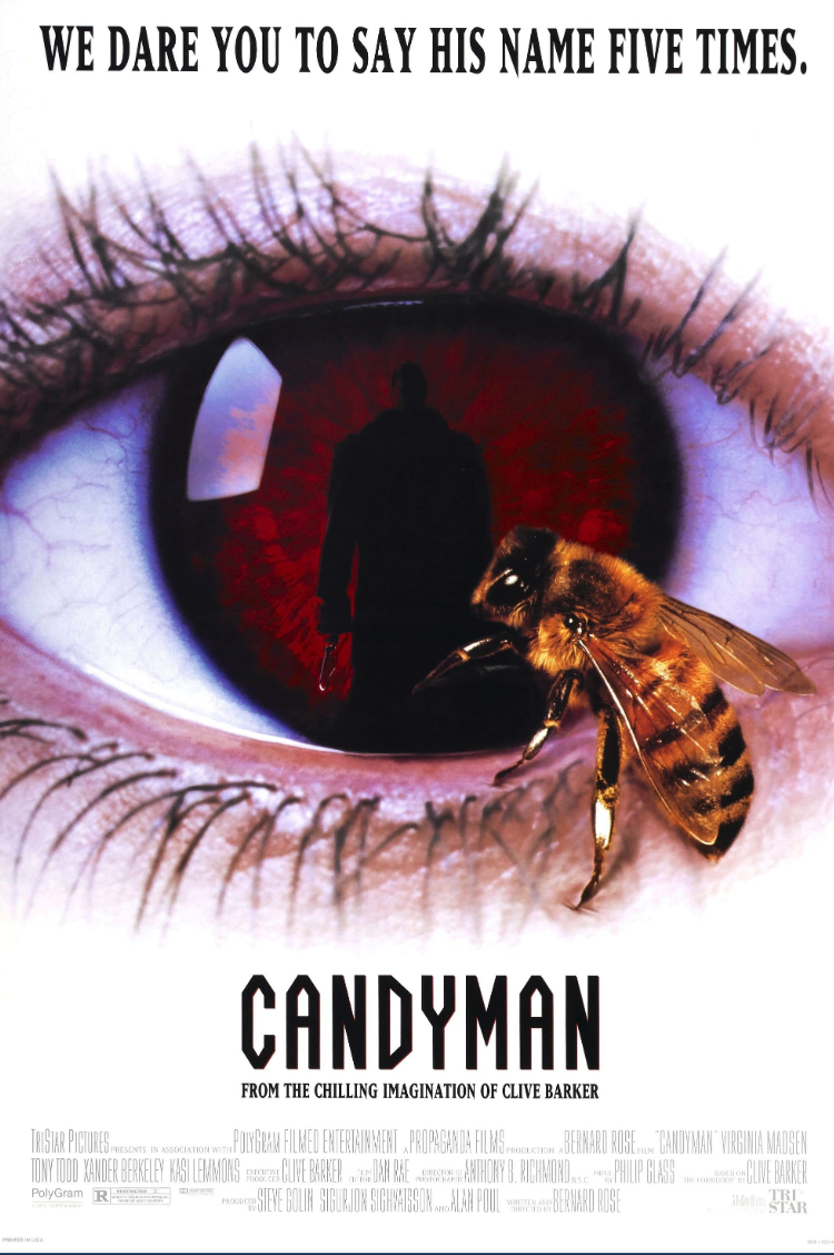 All the academics have dinner, and Purcell, an older professor, says he wrote a paper on Candyman ten years ago. He says the legend first appears in 1890, and he was the son of a slave. He’d been sent to the best schools and was a talented portrait artist. A wealthy landowner hired him to paint his daughter, who soon became pregnant. The father paid hooligans to chase Candyman and saw his hand off. Then they smeared honey all over him until the bees stung him to death. They burned him up in a fire and scattered his ashes where that tenement stands today.