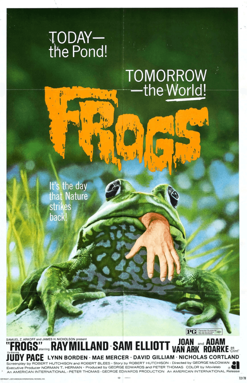 This was the first of many “Eco Horror” movies of the 70s. It was Sam Elliotts’s first starring role and Joan Van Ark’s first film. Most of the live frogs used in the film eventually escaped into the wilderness.