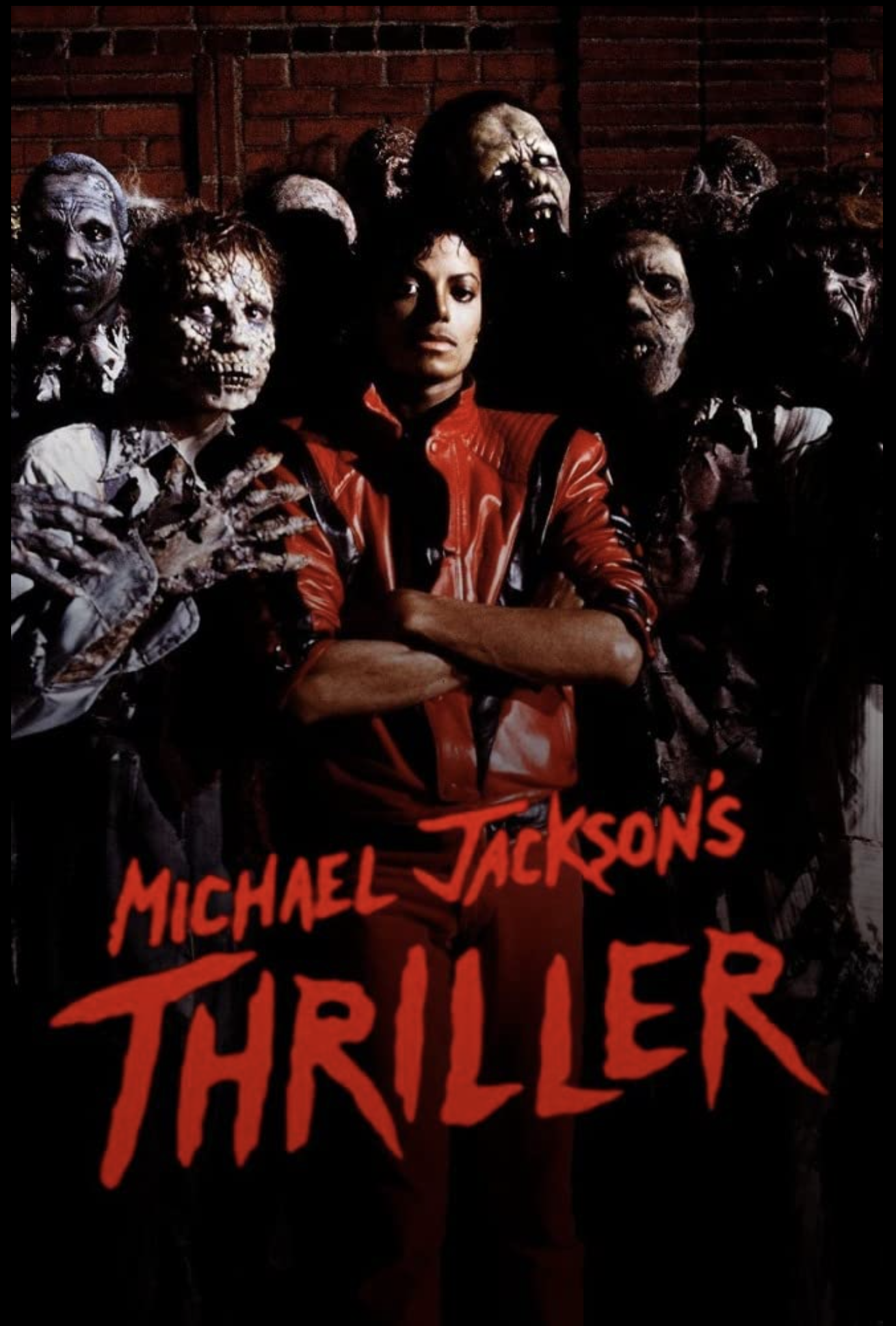 Nope— It’s just a movie, a “Thriller,” being watched by Michael Jackson and his girlfriend. She’s terrified by the film and wants to leave early. They walk home past the graveyard, where they are surrounded by zombies. As the zombies rise out of their graves, from under manholes, and other places, we hear the unmistakable voice of Vincent Price reading his lines.