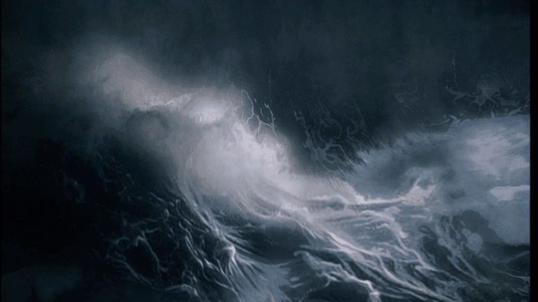 Next thing we see, Lexi is dead. There’s another big wave, and Megan goes overboard again. When she gets back on, she considers cutting Daniel’s safety line loose and then just disconnects it. The current soon carries him away. She then helps Mike back on board.