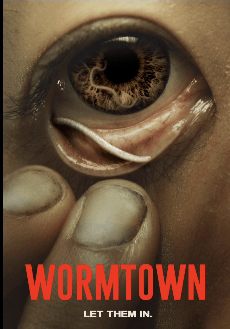 We open on a man at the optometrist’s office; he’s been having headaches and his eyes hurt. He’s the mayor of the town. He claims he can now see in the dark. The eye doctor looks into his eye and sees… worms. We then cut to the town, and it looks like it’s populated by people with skin conditions. The mayor and the others infected by the worms run the town, the radio station, and the churches, working for “the greater good.” We then see a couple of women shaving each other’s heads. Credits roll.