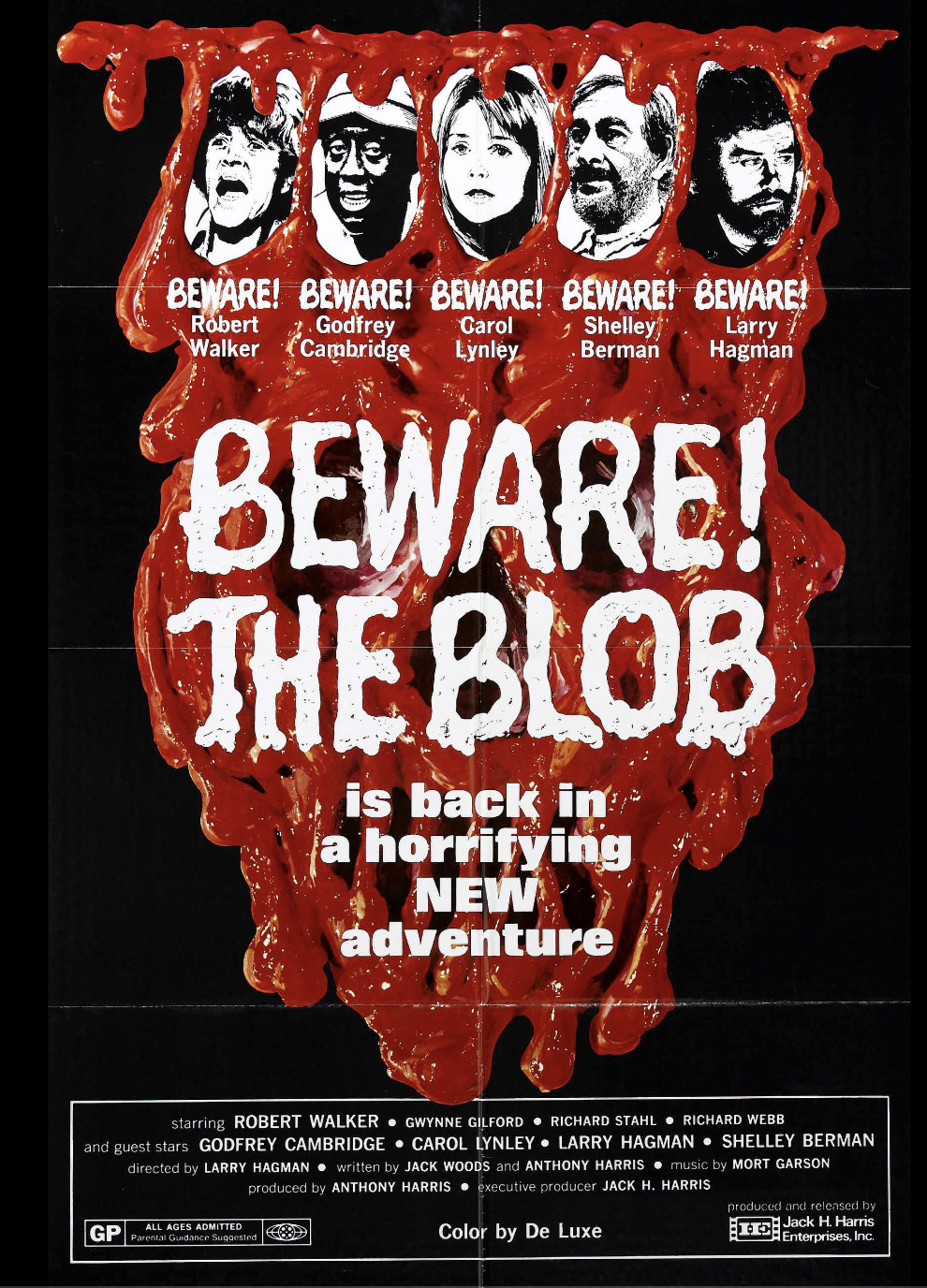 The police release Lisa and Bobby, but she’s really insistent about the thing she saw. The police didn’t find anything. One of the deputies arrests a naked man running down the street; the blob ate the man’s dog. Lisa and Bobby go home, forgetting that this is Bobby’s surprise party. She gets even more hysterical, but they all think she’s on drugs and ignore her carrying on.