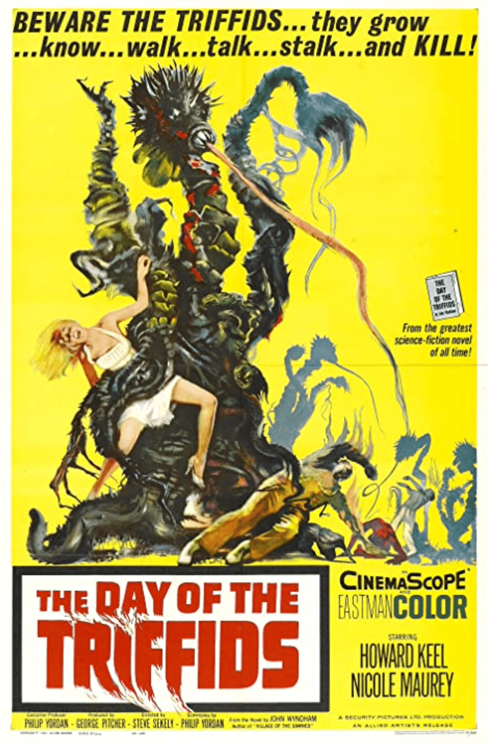 There is a voiceover that talks about “Eating plants” like the Venus Flytrap. This film is about a new species, known as Triffids. Credits roll.