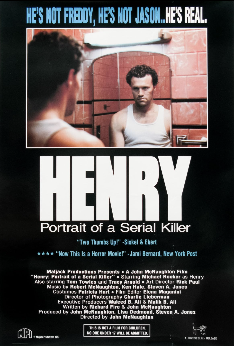 It’s surprisingly non-violent compared to a lot more standard horror films; it’s also missing a lot of the usual horror tropes, which is what caused a lot of controversy when it was released. It’s filmed more like a documentary than a horror film. There’s very little blood or gore. Yes, lots of people die, but they’re usually very clean deaths. There are no police shown at any point in the film, and there aren’t really any “good guys” in the movies. It feels like we’re just watching Henry do what he does, and he doesn’t get caught at the end.