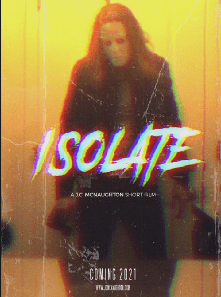 A young woman is just getting over COVID, but she’s still isolated. She turns off the computer and checks the alarm— she thought she’d already set it, but it’s off now. She looks at her security camera, and there was someone creepy outside just a few minutes ago. She sees that they came inside.