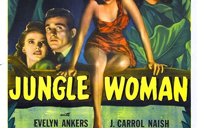 We see the shadowy silhouette of a man and woman fighting, and the woman loses. We then get the headline “Dr. Fletcher Takes the stand at the Coroner’s Inquest.” There’s a trial, and Dr. Fletcher walks us through what happened in an extended flashback of 1943’s “Captive Wild Woman.”