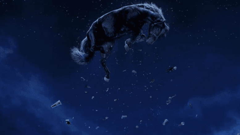 Antlers Holst, the famous director, shows up to film the whole thing. He wants to use a horse as bait to get the sky creature to come after it. They have to hurry; 40 people disappearing tends to attract investigators. OJ thinks the thing can be “wrangled” just like a horse.