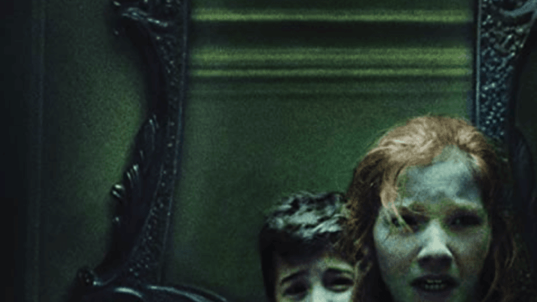 Back in the past, ALan shoots Marie a couple of times and then comes after the kids. The two kids attack the mirror with golf clubs, but they end up missing completely since the mirror is tricky. Alan attacks Kaylie, and Tim grabs the gun. Tim shoots Alan but only with Alan’s assistance. And that’s where the crack in the mirror happened. Then a whole room full of ghosts appear.