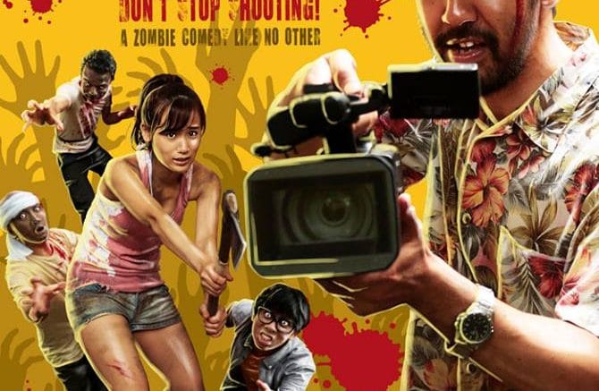 We begin with a zombie cornering a girl and biting her to death. “Cut!” Oh, it’s just a film crew making a zombie movie. This is the 42nd take. The director yells at the leading woman that he wants to see “real fear” and yells at her to “quit acting!” He may be overreacting just a little bit himself. She just doesn’t look scared enough.