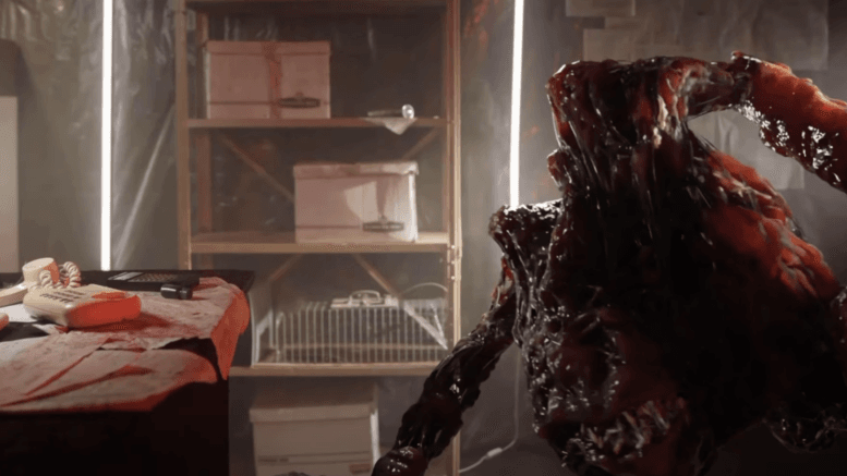 I’m not quite sure why the scientists have a locker full of glass water bottles, but I guess they have reasons. The creature design and effects are pretty cool and fit the look of the film perfectly. We don’t know what happened or why, but it’s a well-made scene from a larger story.