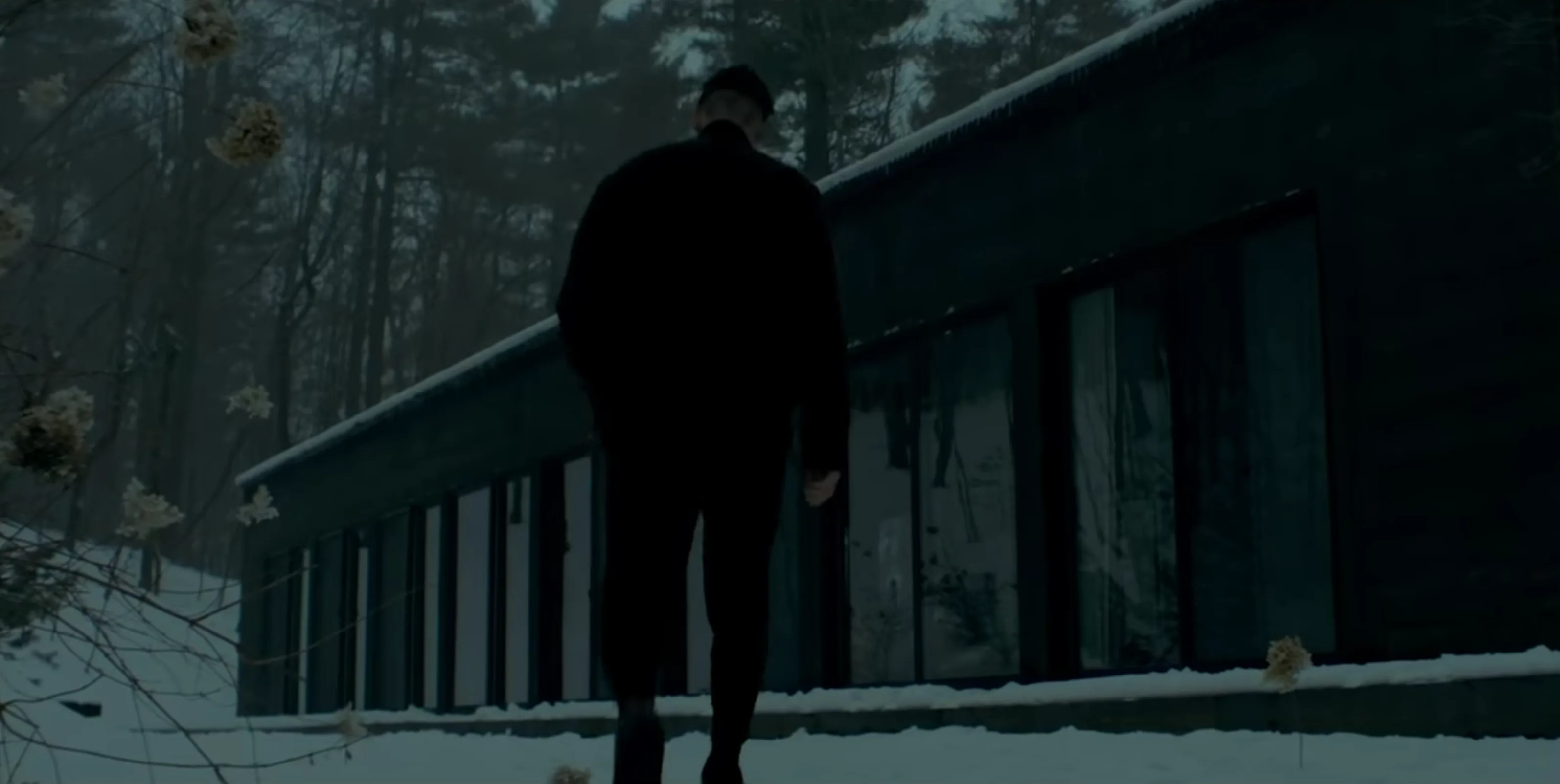 A man walks toward a cabin that is surrounded by glass walls. At first, he appears to be a burglar, but he doesn’t go inside. The renter of the house, Scarlett, is at the gym, playing tennis. She eventually arrives at the house, dragging a suitcase behind her. The man knocks on the window and says his nave is David. He also claims he’s here to give her the WiFi password and show her around. She lets him in but soon has second thoughts about doing so. He points out the phone and then leaves, walking down the long driveway in the snow. Scarlett soon learns that she has no cell service at the house.