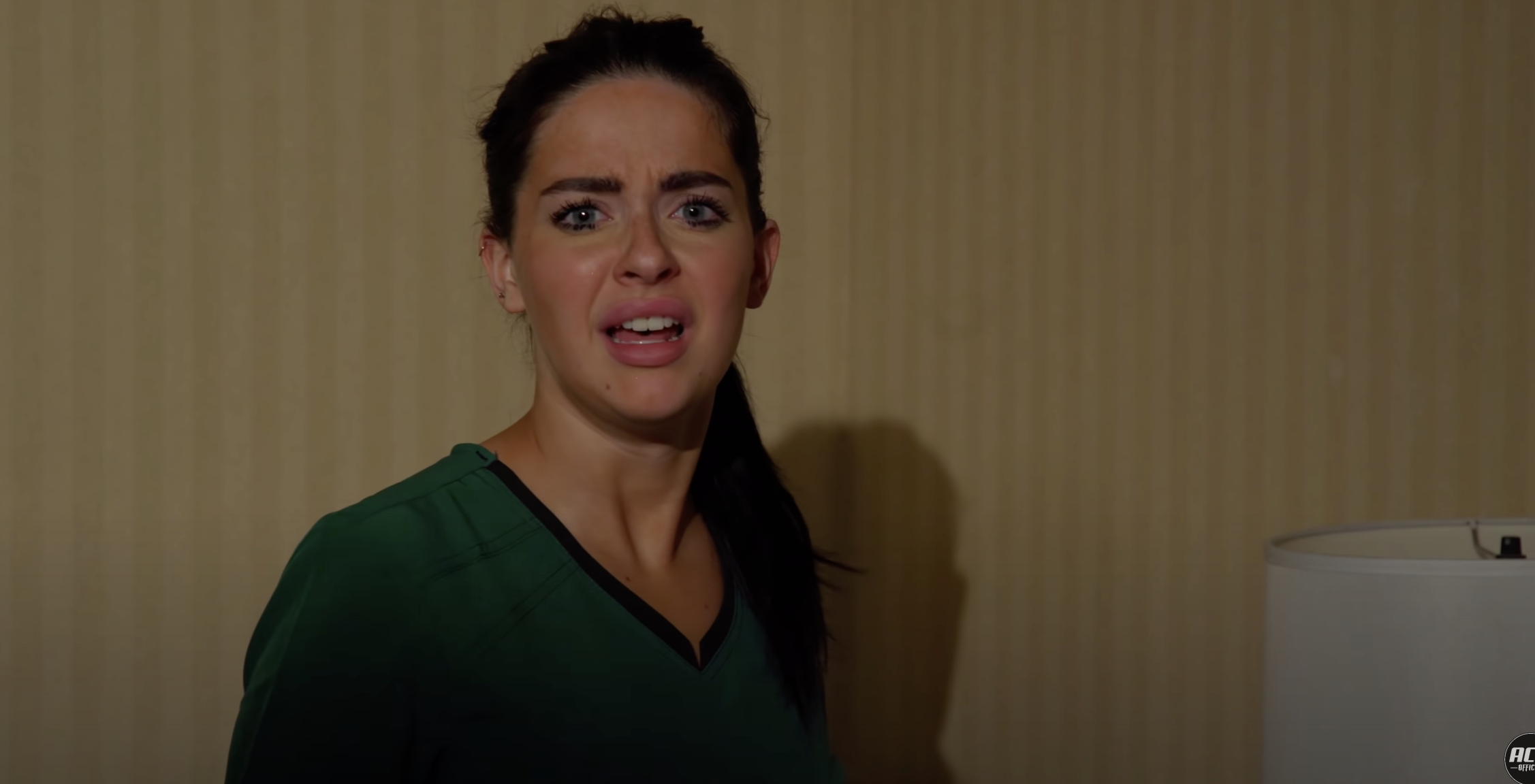 While staying out of town on business on New Year’s Eve, a woman hears a loud knock knock coming from the hotel room next to hers. The desk clerk says there’s no one else on her floor, but he agrees to send up a maid to check the room. It goes badly.
