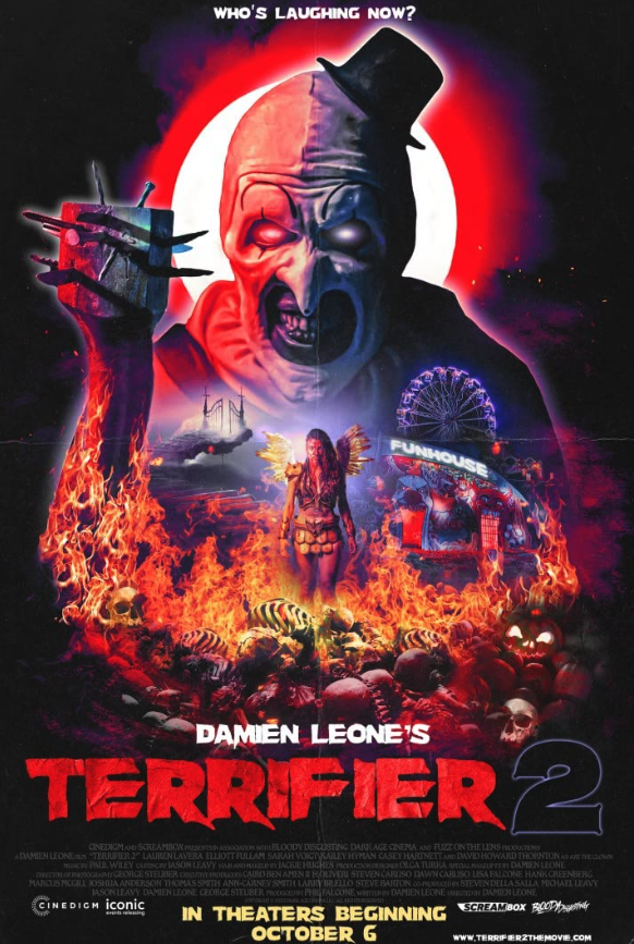These actors all look like high school students– Well, at least they were high school students 15 to 20 years ago. That sure was a well-lit abandoned carnival. People in Terrifier films all live way longer than they should considering the damage they take.