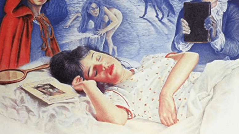 Grandma makes a pretty red cloak for Rosaleen before she goes back home to her parents. Rosaleen and the boy go for a walk in the woods. They soon… stray from the path. The boy runs back to town, but Rosaleen is out there with the wolves. She returns unscathed, but has a weird baby doll in her hand that hatched from an egg.