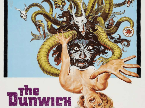 Nancy and Wilbur have a picnic, and she’s wobbly on her feet afterward. He takes her up the mountain to an old, isolated altar atop a cliff. It’s called “The Devil’s Hopyard.” It’s obvious that he has some kind of hypnotic influence over her. He wants to bring “Yog Sothoth” and the other Old Ones back into the world. The two have hallucinogenic sex (I think) on the altar.