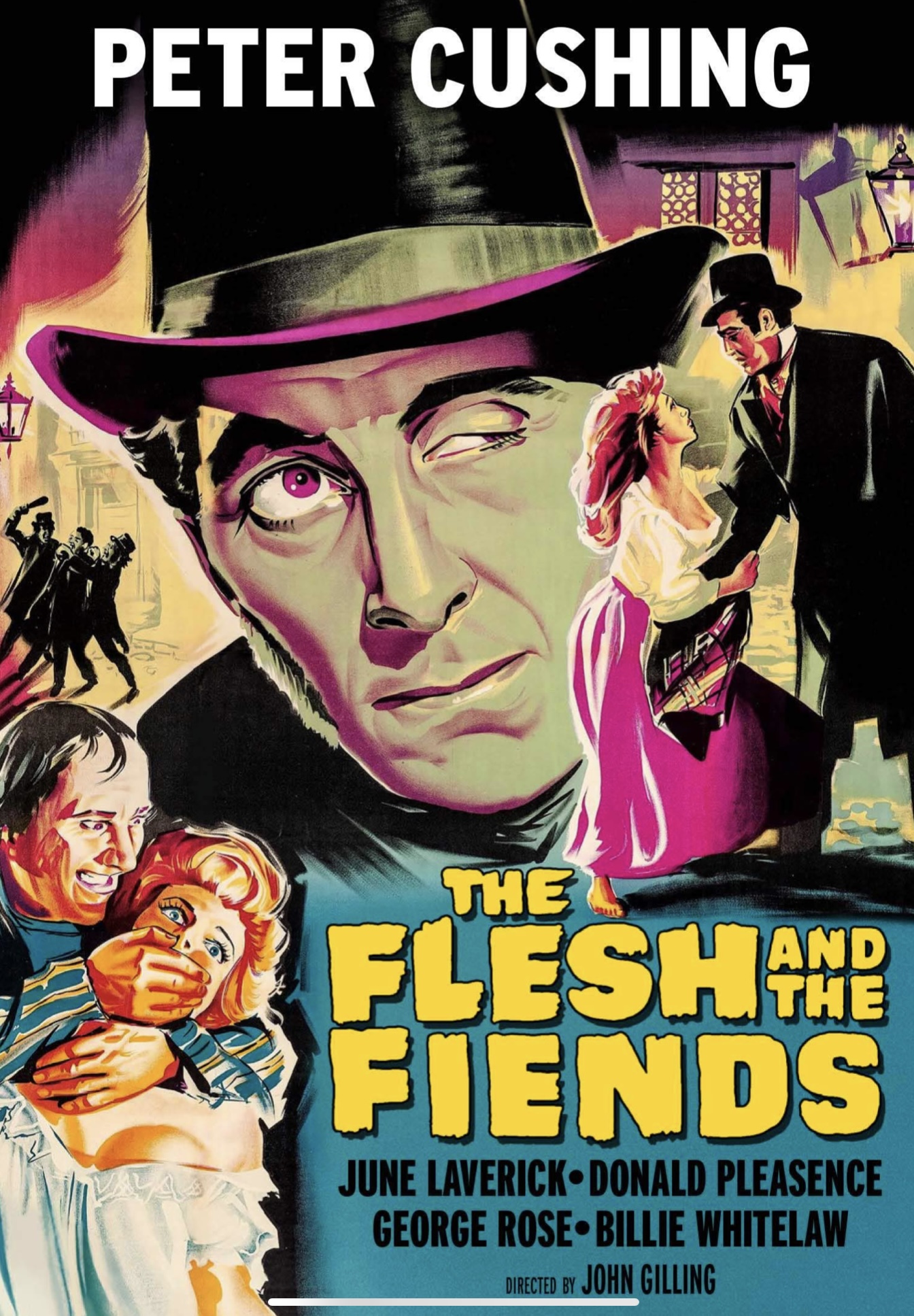 This is based on the true-life story of the murderers Burke and Hare, who sold corpses to the real life Dr. Knox. Their eventual trial and resulting publicity led to state-sponsored cadavers being officially supplied to medical schools legitimately. Donald Pleasance and George Rose are suitably creepy as the murderous pair. Peter Cushing, as Dr. Knox, plays his essentially like Dr. Frankenstein, cold and scientific until the end when he redeems himself. Only he’s got a weak left eye in this one, as the real Dr. Knox did.
