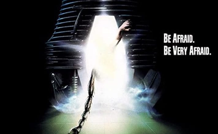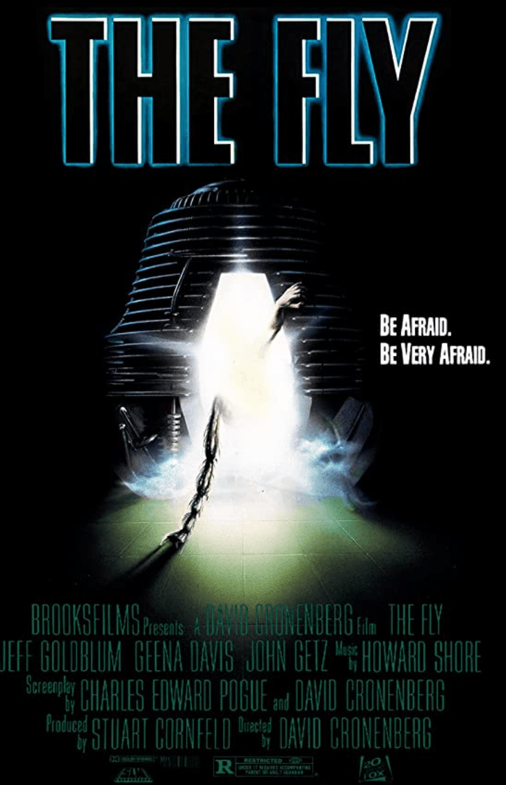 Stathis wakes up, crawls over to the machine and shoots the cabling going into Veronica’s telepod. Brundle opens his pod, starts to walk out, and then the machine teleports him and part of the pod into the third chamber. Veronica is OK, but Brundlefly and the telepod have merged. Let’s just say there are some bugs to work out of the system…