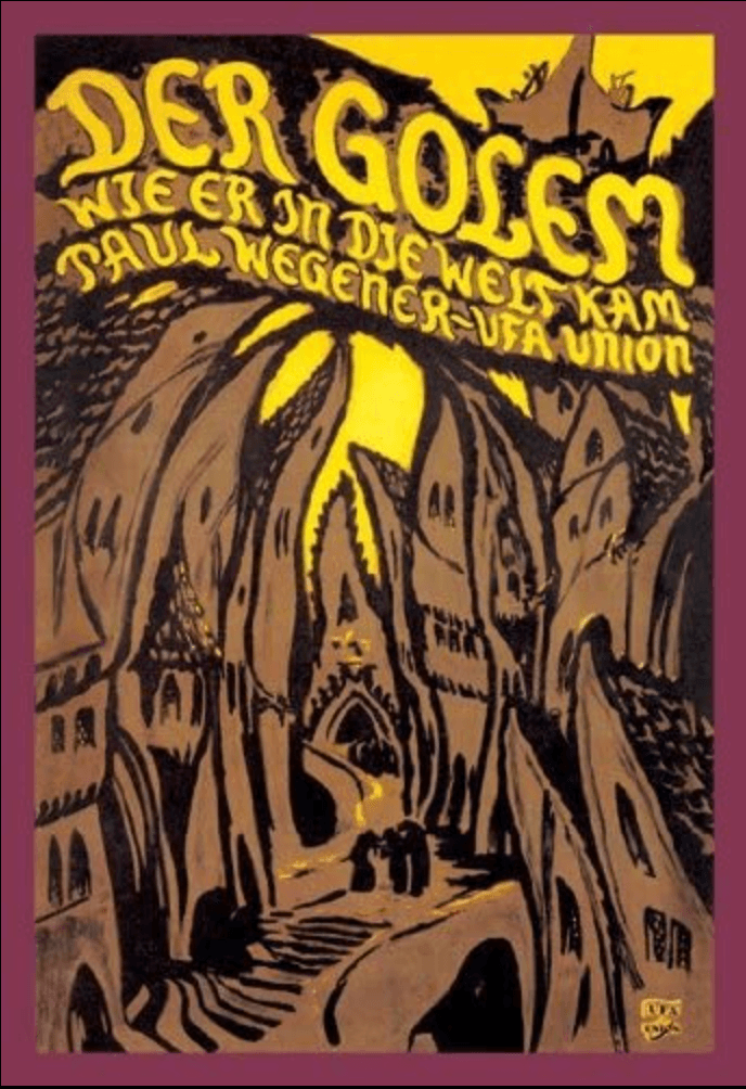 The buildings and scenery are all very severe and off-kilter, another example of German Expressionism, just as with “The Cabinet of Dr. Caligari” from the same year. This was the third film of a loose trilogy “The Golem” (1915) and “The Golem and the Dancing Girl” (1917), but this is the only surviving film. This is both a prequel and a remake of the 1915 film.